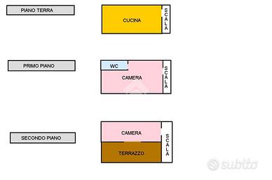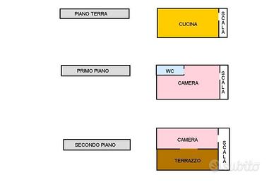 Terzo piano: una seconda camera con terrazzo panoramico e balconcino con vista sulla piazza centrale. Completa il piano un bagno con pavimento in ceramica e infissi in PVC.