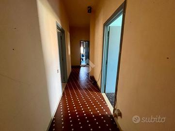 L'immobile si sviluppa su un unico livello e offre un ampio ingresso, una cucina abitabile con ripostiglio e accesso diretto al terrazzo, un soggiorno luminoso, due camere matrimoniali, una camera singola e un bagno finestrato con vasca.