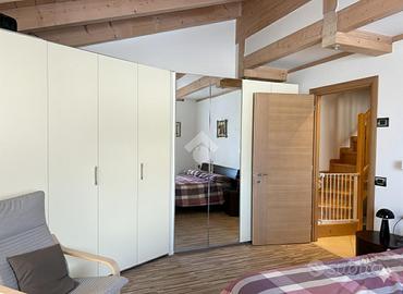 Prestigioso attico al primo piano in villetta bifamiliare composta da ingresso, luminoso soggiorno, cucina abitabile, ripostiglio, disimpegno, due bagni, tre stanze, due poggioli e terrazza con splendida vista sul paese e sul Gruppo del Brenta. Portico uso posto auto e un posto auto esterno ma coperto. Ampio spazio esterno comune uso posti auto e verde comune. Termoautonomo a metano, riscaldamento a pavimento, stufa a legna in cucina, pannelli solari. Posizione strategica: sulle piste da sci, comoda al centro e a tutti i servizi. Arredato (escluso il divano e letto). Aspirazione centralizzata. Spese condominiali assenti.