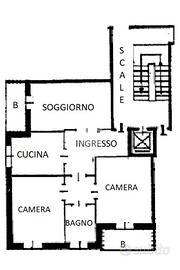 L'immobile è composto da un ampio ingresso su corridoio, che disimpegna i vari locali, quali: cucina, soggiorno con balcone, due camere matrimoniali, una con balcone e bagno.