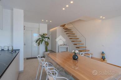 ANDRIA - In Via Montessori proponiamo in vendita un appartamento su due livelli, inserito in uno stabile di recente costruzione, realizzato circa cinque anni fa. L'abitazione si sviluppa tra il terzo e il quarto piano ed è dotata di un doppio accesso, sia dal vano scale tramite ascensore sia con accesso diretto all'interno dell'appartamento come da foto, elemento che garantisce comfort e riservatezza. Il terzo piano accoglie la zona giorno, composta da un ingresso con cucina a vista che si apre sulla veranda antistante attraverso due ampie vetrate, conferendo agli ambienti un'eccellente luminosità naturale. Sullo stesso livello troviamo un soggiorno comodo e riservato, una stireria con affaccio sul balcone retrostante e un bagno. Attraverso una scala interna di design si accede al quarto piano, destinato alla zona notte. Qui sono presenti una camera da letto matrimoniale con cabina armadio, due camerette con balcone e un bagno, rifinito con materiali e soluzioni dal design moderno. L'immobile è dotato di riscaldamento a pavimento, mentre l'illuminazione è affidata a un sistema a LED a luce calda, integrato nel ribassamento del soffitto, che contribuisce a creare un ambiente elegante e accogliente. Soluzione ideale per chi è alla ricerca di un'abitazione moderna, curata nei dettagli e pronta da vivere, in un contesto recente e ben servito. È inoltre prevista la possibilità di acquistare l'intero arredamento, previo accordi.