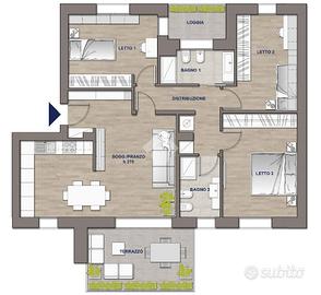 * tre camere da letto, ideali per famiglie o per chi desidera uno spazio da adibire a studio, di cui una con loggia,