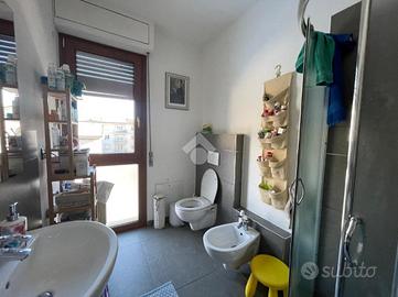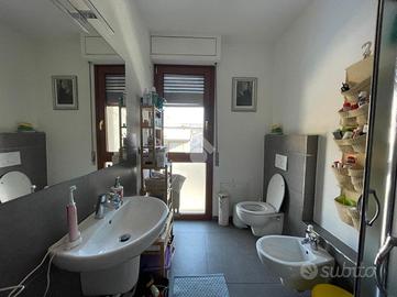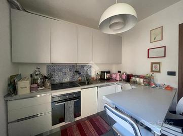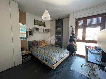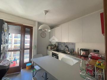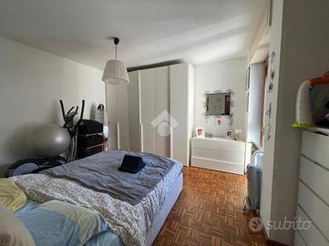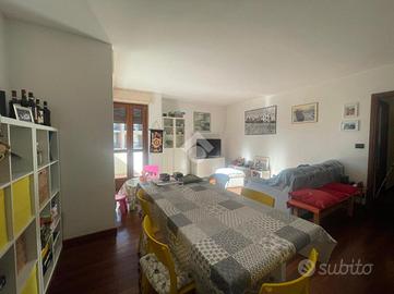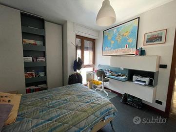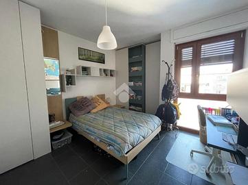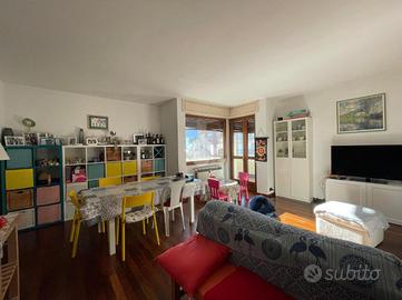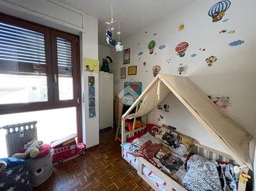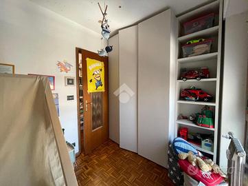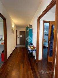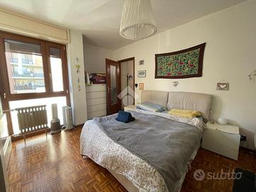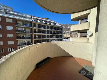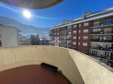 In Aosta, Viale Federico Chabod, al ridosso del centro e dell'ospedale, l'alloggio è al quarto piano servito da ascensore. Il soggiorno esposto a sud-ovest con l'uscita sul balcone è ampio e luminoso. La cucina è separata servita da un balconcino. La zona notte ospita due camere matrimoniali e una camera singola. Completa l'unità due bagni, due posti auto assegnati, il box auto e cantina. Il riscaldamento è semiautonomo a metano con termovalvole e contakilocalorie. L'immobile attualmente è locato fino a Maggio 2027 ma nel caso l'inquilino trovasse un immobile da acquistare lo lascerà prima.