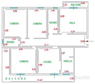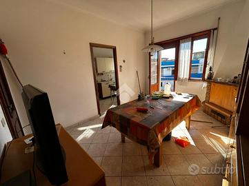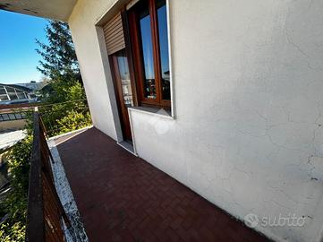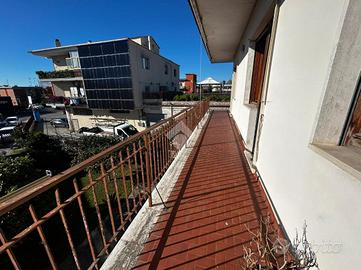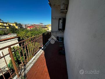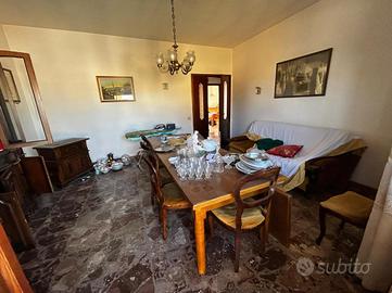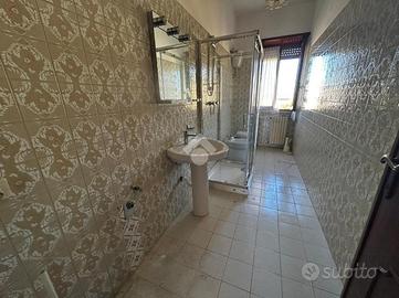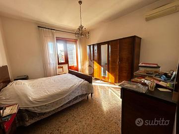 1°piano in contesto di sole 2 unità abitative, privo quindi di spese condominiali, circondato da ampio giardino in comune. Ampio ingresso, salone, cucina abitabile con tinello separato, 3 camere da letto (di cui 2 matrimoniali) e 2 bagni dotati entrambi di finestra, con sanitari nuovi. Servito da 2 balconi con uscite dalla sala e dalla cucina. Completano la proprietà il box auto di 130 mq posto al piano seminterrato, con accesso diretto anche dall'interno dello stabile ed il lastrico solare di copertura del fabbricato ad uso comune. La soluzione è posizionata poco distante da vie principali e dalla stazione ferroviaria. E' possibile visionarla tutti i giorni previo appuntamento.