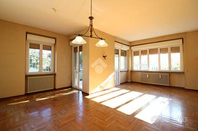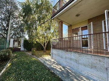 ARCORE: Centro In una tranquilla zona residenziale comoda con tutti i principali servizi, a pochi passi da scuole, negozi e dalla stazione ferroviaria, proponiamo un appartamento in villa di 4 locali, situato al piano rialzato di un contesto esclusivo di sole quattro unità abitative. L'immobile offre una superficie generosa di 185 mq ed un giardino privato di circa 670 mq, perfetto per godersi momenti all'aria aperta in tranquillità. Dall'ingresso si accede alla luminosa e spaziosa zona giorno, composta dal soggiorno e dalla sala da pranzo con accesso diretto al terrazzo, oltre alla cucina. Un comodo disimpegno conduce alla zona notte dove troviamo due camere da letto e due bagni: il primo con vasca ed il secondo più ampio con vasca e doccia, e con accesso diretto ad un secondo terrazzo. Entrambi i terrazzi permettono di accedere direttamente al giardino di proprietà. Completa la proprietà il piano piano interrato composto da un locale cantinato di circa 60 mq e dalla cantina, entrambi di proprietà, e dal posto auto coperto comune. Le finiture dell'appartamento comprendono pavimentazioni in ceramica e parquet, serramenti in PVC con doppi vetri, tapparelle elettriche ed inferiate. Questa soluzione abitativa si presenta in stato originario ed è la scelta ideale per chi desidera vivere in un contesto residenziale esclusivo e tranquillo, senza spese condominiali, e con ampi spazi interni; senza rinunciare alla comodità di avere tutti i servizi a portata di mano. La nostra agenzia immobiliare si occupa di immobili in vendita e in affitto nel Comune di Arcore.