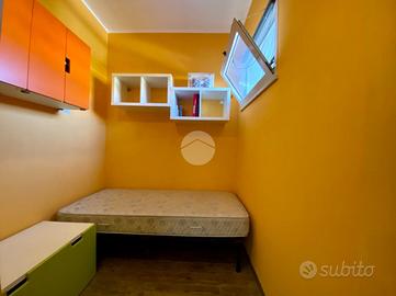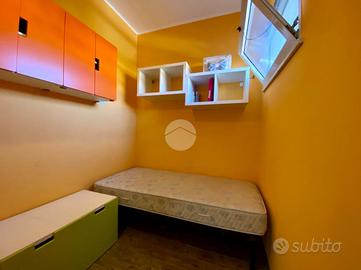 L'immobile si apre su una corte mattonata anteriore, arricchita da pratiche tende da sole che rende lo spazio ancora più vivibile e accogliente, perfetto per colazioni all'aperto o momenti di relax. All'interno troviamo un soggiorno con angolo cottura, luminoso e ben distribuito, pensato per trascorrere piacevoli momenti in famiglia o con amici. La zona notte offre una camera matrimoniale, due camerette e un bagno finestrato con box doccia.