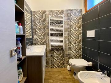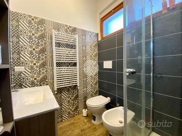Sul retro si trova una seconda corte privata, anch'essa mattonata, dove è presente un ulteriore bagno finestrato, affiancato da una doccia esterna, soluzione pratica e funzionale soprattutto nei mesi estivi, dopo una giornata di mare.