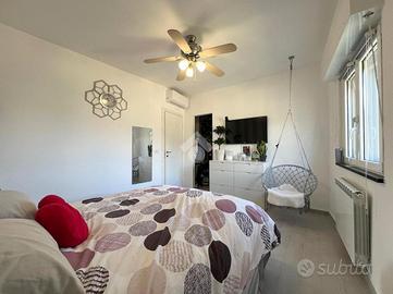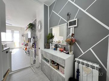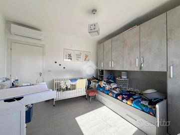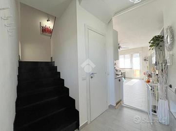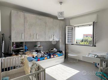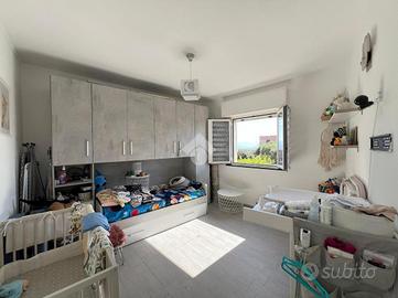 Arenzano, via della Colletta: ci troviamo nella zona del Roccolo poco prima dell'ingresso del comprensorio della Pineta, in contesto tranquillo e con facilità di parcheggio. L'immobile è situato al secondo piano senza ascensore e si sviluppa su due livelli: entrando ci accoglie la spaziosa zona giorno con cucina a vista, da questo ambiente si accede al balcone che espone verso il mare ed il verde circostante. La vista è piacevole e molto aperta e soleggiata. Su questo livello c'è anche una comoda e spaziosa dispensa. Salendo le scale che conducono al terzo ed ultimo piano si arriva alla zona notte che è composta da due camere grandi entrambe matrimoniali e dal bagno con box doccia. Nella stanza dove attualmente è stata adibita la camera matrimoniale è stata creata una cabina armadi, mentre la seconda camera attualmente è arredata con un letto singolo con armadio a ponte. Tutti gli ambienti sono molto luminosi e godono di luce naturale tutto il giorno. Il riscaldamento è termoautonomo ed è presente anche il condizionatore. L'immobile si presenta in ottimo stato ed è pronto da abitare, gli infissi sono in pvc con doppio vetro e la porta d'ingresso è blindata. Il pavimento, uniforme in tutta la casa, rende l'ambiente particolamente luminoso e armonioso. Completa la proprietà una cantina situata nei fondi del caseggiato.