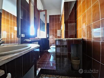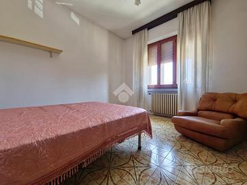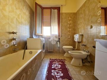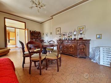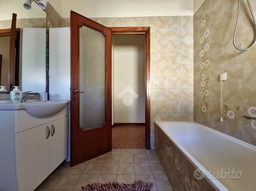 L'appartamento posto al primo piano presenta un'ottima distribuzione zona giorno/zona notte: dall'ingresso, sulla destra, si accede direttamente ad un'ampia sala con accesso al balcone frontale, sulla sinistra si trova la cucina con cucinotto. Dall'ingresso, attraverso una porta a vetri, si accede al corridoio che ben disimpegna le varie stanze: sulla sinistra troviamo la matrimoniale con il primo servizio igienico finestrato in camera mentre, sulla destra, troviamo la seconda camera matrimoniale e il secondo servizio igienico finestrato.