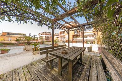 Nella zona di Casina delle Rose, appartamento di 135 mq situato al piano terra di una palazzina ristrutturata in cortina . La distribuzione interna comprende ingresso, salone, cucina, disimpegno, due ampie camere, due bagni e una soffitta, ideale per chi cerca comfort e praticità. Grazie alla sua ampia metratura, l'appartamento può essere facilmente diviso in due unità abitative, offrendo flessibilità per diverse esigenze abitative. Uno dei punti di forza è il terrazzo di 200 mq, perfetto per momenti di relax all'aperto o per ospitare amici e familiari. La proprietà include anche un posto auto condominiale, garantendo comodità e sicurezza. Situato in una zona ben servita e immersa nel verde, l'appartamento offre un equilibrio perfetto tra tranquillità e accessibilità ai servizi.