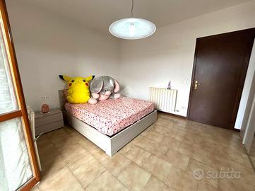 La zona notte, ben separata dagli spazi di rappresentanza, garantisce comfort e tranquillità. La camera matrimoniale, dotata di accesso diretto al giardino, rappresenta un ambiente intimo e rilassante, mentre la camera doppia e la camera singola offrono soluzioni versatili per figli, studio o stanza per gli ospiti. Il bagno finestrato, completo di vasca e doccia, è pensato per rispondere alle esigenze di tutta la famiglia.