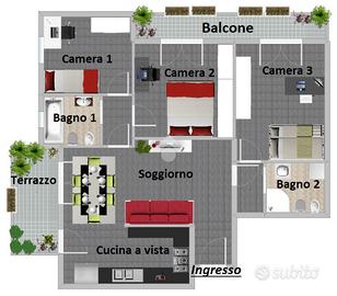 ASSAGO: in centro paese, appartamento di 4 locali posto al quarto piano arredato come da foto. Soggiorno con cucina a vista e balcone, tre camere da letto e doppi servizi. Box incluso nel prezzo. CONTRATTO TRANSITORIO 12-18 MESI