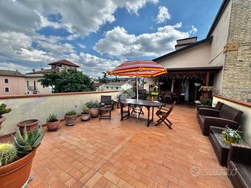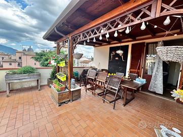 Nel cuore di Santa Maria degli Angeli, ad Assisi, proponiamo in vendita appartamento situato all'ultimo piano su piccolo contesto di 6 unità abitative. L'immobile, ristrutturato nel 2012, offre un'ampia zona giorno, ideale per momenti di relax e convivialità e angolo cottura con camino. Le tre camere da letto, di cui due matrimoniali entambe con balcone, garantiscono spazio e comfort per tutta la famiglia. L'appartamento è servito da un ascensore privato che conduce direttamente all'interno. La proprietà dispone di due bagni finestrati e funzionali, oltre ai restanti due balconi che offrono una vista panoramica sulla zona circostante. Un punto di forza è il terrazzo di 100 mq, in parte coperto, perfetto per cene all'aperto o per godersi il panorama in totale tranquillità. Un'opportunità unica per chi cerca una residenza spaziosa e ben collegata nel cuore dell'Umbria. Vi è la possibilità di acquistare la soffitta abitabile mansardata di circa 40 mq, servita da ascensore ed in parte rifinita ad € 55.000 dove si può fare cambio d'uso a civile abitazione