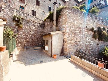 Nel cuore del centro storico di Assisi, lungo un suggestivo vicolo nei pressi della Chiesa di Santo Stefano, proponiamo in vendita un appartamento situato al secondo piano. L'immobile offre una superficie di 135 mq, distribuiti in soggiorno con camino, cucina, due bagni ventilati, due camere matrimoniali e camera doppia. Completa la proprietà lastricato di 50 mq ed un fondo finestrato di 50 mq al piano terra con ingresso indipendente, dove vi è la possibilità di fare cambio d'uso a civile abitazione. Questa soluzione abitativa rappresenta un'opportunità unica per chi desidera vivere immerso nella storia e nella bellezza di Assisi.