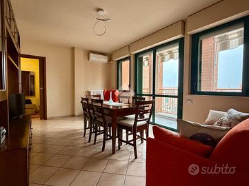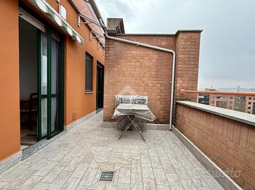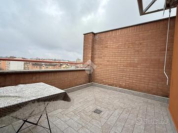 Corso Felice Cavallotti, nel centro di Asti, appartamento al settimo ed ultimo piano di un edificio moderno con ascensore. L'immobile offre un'ampia zona giorno composta da una cucina abitabile e un ampio soggiorno, entrambi con accesso diretto a un spazioso terrazzo vivibile che regala una vista panoramica sulla città di Asti. La proprietà include due camere da letto, ideali per una famiglia o per chi desidera uno spazio aggiuntivo per ospiti o studio. Sono presenti due bagni, uno con vasca e l'altro con doccia, garantendo comfort e praticità. L'appartamento gode anche di due balconi completi di zanzariere, tapparelle elettriche e vetrate VEPA. L'immobile è dotato di riscaldamento autonomo e aria condizionata, assicurando un clima ideale in ogni stagione.Completano la proprietà un box auto, con richiesta a parte, e una comoda cantina per ulteriore spazio di archiviazione.