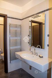 l'appartamento è stato oggetto di una completa ristrutturazione tra il 2005 ed il 2007 ed è composto da un ingresso, ampia e luminosa zona living con cucina, sala da pranzo e salotto unico ambiente, un bagno a servizio della zona living, ulteriore bagno a servizio delle due camere matrimoniali ed infine camera padronale con bagno interno e zona spogliatoio;