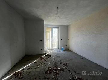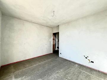 L'abitazione si apre al piano terra con un ingresso che conduce a un luminoso soggiorno, cucina con balcone e bagno finestrato con box doccia
