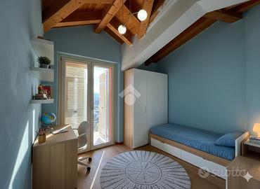 La villetta si sviluppa su più livelli. Al piano terra troviamo l'ingresso che conduce alla luminosa zona giorno con soggiorno e angolo cottura; da qui si accede a un comodo terrazzo. Un disimpegno porta al primo bagno, completo di box doccia. Al piano superiore si sviluppa la zona notte, composta da due camere da letto, una delle quali ha un balcone con vista; e da un secondo bagno. Scendendo al piano interrato è presente un'ampia taverna, perfetta come sala hobby, area relax o studio privato.