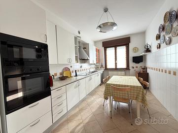 L'appartamento di 130 mq interni è composto da cucina abitabile, soggiorno ampio e luminoso con esposizione est-sud che garantisce luce naturale, 3 camere spaziose, doppi servizi e lavanderia.