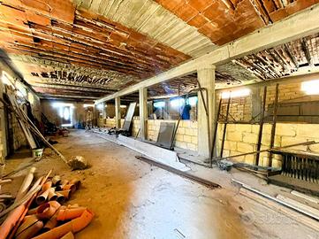 Internamente l'immobile è attualmente allo stato grezzo e si compone di un ampio vano unico da suddividere, ideale per chi desidera progettare e realizzare spazi su misura secondo le proprie esigenze. La metratura consente la creazione di più ambienti, come soggiorno con cucina, camere da letto, doppi servizi e ripostiglio.
