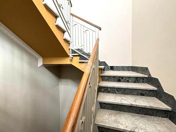 L'accesso avviene tramite una comoda scala in marmo che conduce al secondo piano, dove troviamo un ingresso, tre camere da letto, una cameretta, un bagno e balconi sia sul prospetto principale che sul retro della palazzina.