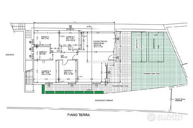 Il piano terra di circa 125mq è così suddiviso, ingresso dal soggiorno con cucina separata, disimpegno camera matrimoniale, due bagni e altre due camere da letto, giardino di ca. 70 mq, e box auto singolo.