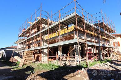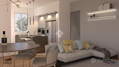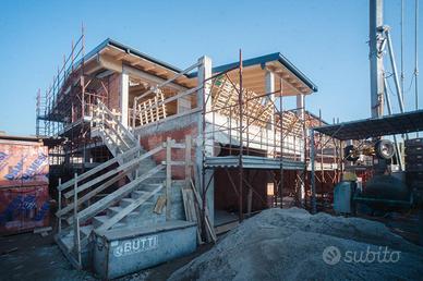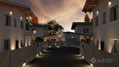 Signorile complesso di prossima realizzazione di appartamenti in villa di ultima generazione ad alto risparmio energetico. Appartamento al piano terra di quattro locali con doppi servizi e cabina armadio. Ingresso indipendente, giardino privato e box singolo. Possibilità di tre locali con doppi servizi, cabina armadio e lavanderia. La soluzione è completa di fotovoltaico 2 Kw, pompa di calore elettrica, riscaldamento a pavimento, cappotto esterno, serramenti in pvc e tapparelle elettriche, zanzariere, impianto di ventilazione meccanica controllata dell'aria.