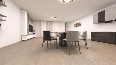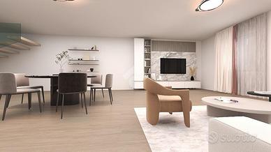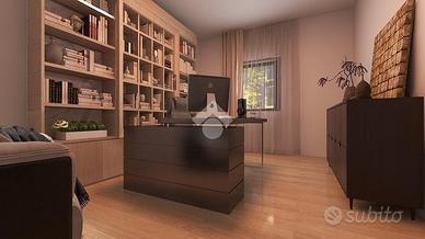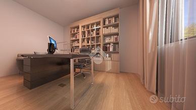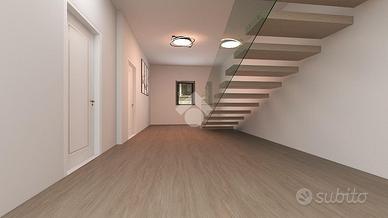 L'immobile, attualmente al grezzo, da progetto è composto da soggiorno, bagno e studio/camera al primo piano; due camere da letto, cabina armadio, ripostiglio e bagno al secondo piano.