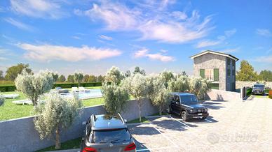 BARDOLINO: Località Modena - in zona tranquilla e verdeggiante a circa 2 km dal centro paese proponiamo nuovo intervento immobiliare di 8 unità abitative di varie tipologie e dimensioni. Il futuro residence si inserisce in un'area di circa 2.500 mq garantendo ampi spazi comuni e una piscina condominiale immersa nel verde sulle prime colline di Bardolino. La soluzione che vi presentiamo è un appartamento quadrilocale di generose dimensioni posto al secondo e ultimo piano dotato di un terrazzo coperto di ben 24 mq; al suo interno si compone di una ampia zona giorno, una cucina abitabile con uscita sul terrazzo, tre camere da letto (matrimoniale,doppia e singola) e un bagno. Tutte le unità avranno a disposizione un posto auto coperto aggiuntivo a quello già assegnato. La nuova realizzazione sarà certificata in "CLASSE ENERGETICA A+". Tale certificazione sarà resa possibile da un importante pacchetto termo isolante sulle murature perimetrali e solai, muri divisori interni in cartongesso a doppia parete, riscaldamento e raffrescamento in pompa di calore ad aria senza quindi rendere necessario l'allaccio al gas metano), serramenti in legno a triplo vetro ad alto isolamento termo - acustico, impianto fotovoltaico per la gestione delle apparecchiature elettriche comuni. Possibilità di personalizzazione delle finiture.