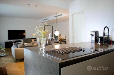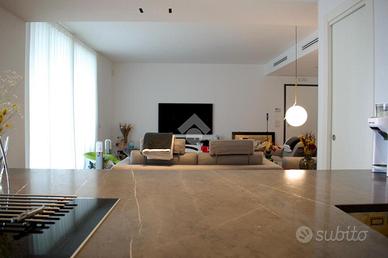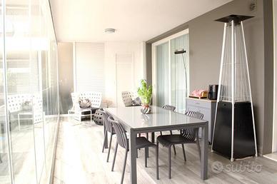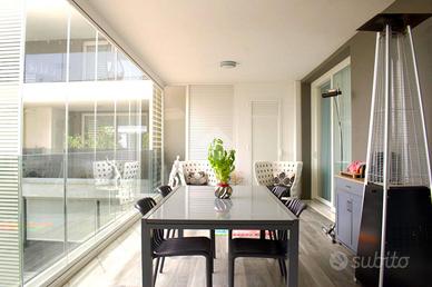 L'appartamento è composto da:Ingresso su ampia zona living open space con cucina a vista, valorizzata da due grandi vetrate scorrevoli con accesso diretto al terrazzo abitabile, ideale per momenti di relax o convivialità;Camera matrimoniale con bagno privato;Camera ragazzi;Bagno padronale;Ripostiglio;Balcone interno di servizio.