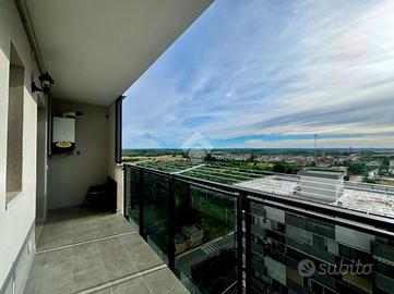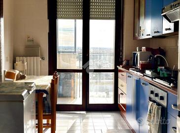 La zona giorno è composta da una cucina abitabile e da un soggiorno dotati di ampi balconi, ideali per godersi momenti di relax.