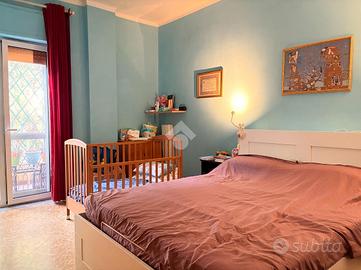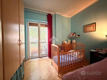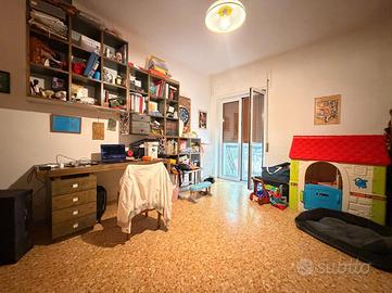 L'ingresso apre su un comodo disimpegno: sulla destra troviamo una prima camera più piccola con finestra e, a seguire, una seconda camera da letto con affaccio su balcone che consente anche un accesso indipendente all'abitazione. Proseguendo lungo il corridoio incontriamo il soggiorno/sala da pranzo con ulteriore balcone angolare, il bagno finestrato con doccia, una terza camera da letto con lo stesso affaccio della seconda e la cucina abitabile.