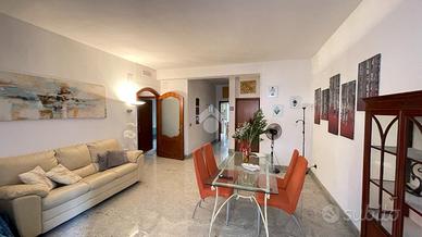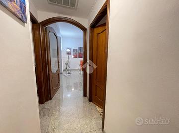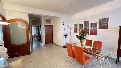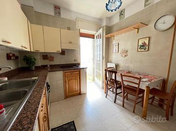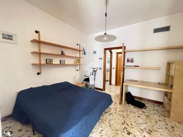L'ingresso dell'abitazione conduce a un ampio salone, ambiente accogliente, reso particolarmente luminoso dalla presenza di una porta finestra che permette l'accesso a un balcone con affaccio diretto su Via Delfino Pesce, dal quale si può godere di una meravigliosa vista mare. Questo spazio, ampio e versatile, è ideale per accogliere familiari e ospiti, garantendo al tempo stesso comfort e rappresentanza.