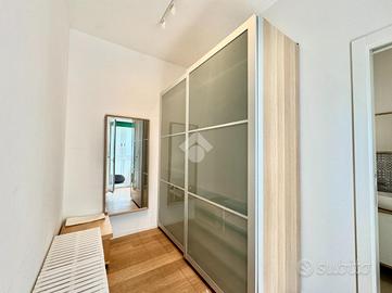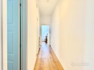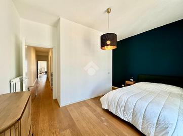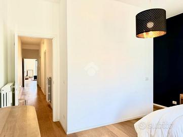 Proseguendo lungo il corridoio si accede alla zona notte, composta da una prima camera, servita da affaccio su comoda veranda interna. A seguire, si trova la camera da letto matrimoniale, di ampie dimensioni, dotata di doppio affaccio, sia su balcone interno che sulla veranda, elemento che dona ariosità e riservatezza all'ambiente. La camera matrimoniale è inoltre servita da ampia cabina armadio e da bagno privato, moderno e funzionale, completo di doccia.