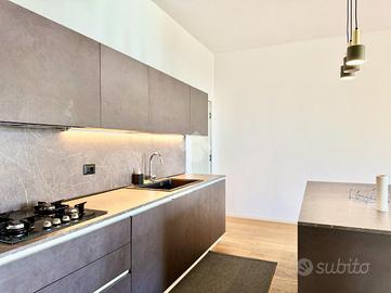 L'ingresso dell'abitazione apre su una spaziosa e luminosa zona giorno, elegantemente organizzata in open space, con angolo cottura a vista e cucina ad isola, soluzione moderna e funzionale che valorizza l'ambiente. Questa zona living gode di un affaccio esterno su Via Michelangelo Signorile, garantendo luce naturale durante tutto l'arco della giornata.