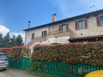 La camera da letto al piano primo garantisce privacy, mentre le due camere al piano superiore offrono ampio spazio per la famiglia o gli ospiti. I due bagni, uno con vasca e l'altro con doccia, sono ben illuminati e funzionali. Non perdere l'occasione di godere del terrazzo panoramico con vista su Assisi, un luogo perfetto per sorseggiare un caffè al mattino o ammirare i tramonti.