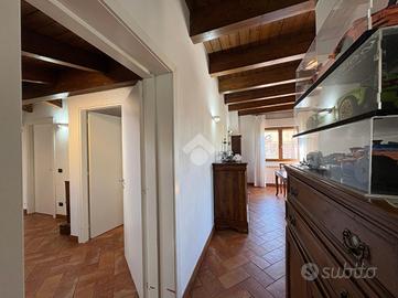 Scopri questo splendido appartamento situato al secondo ed ultimo piano di una casa singola con sole tre unità abitative. Con una superficie di 136 mq, l'immobile è libero su quattro lati, garantendo luminosità e un'ottima ventilazione. La zona giorno è accogliente e luminosa, dotata di un soggiorno con canna fumaria e una cucina separata da una porta a scrigno, perfetta per chi ama cucinare in tranquillità.