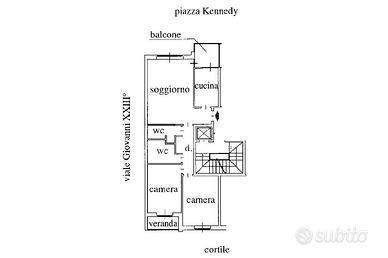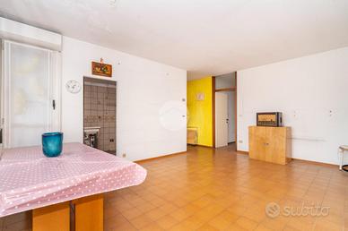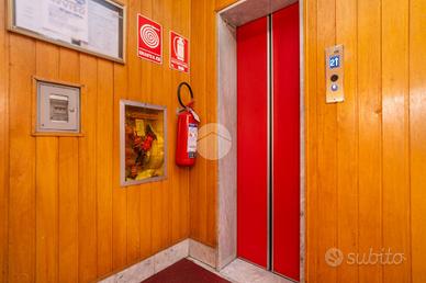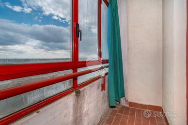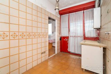 L'immobile è situato al settimo ed ultimo piano della palazzina degli anni 80 servita da ascensore. L'ingresso conduce all'ampio soggiorno reso luminoso da una finestra, può ospitare tranquillamente un divano a isola, una parete TV e un tavolo da pranzo. La cucina può ospitare un arredo completo ed è resa luminosa da un balcone con tende da sole. Un corridoio con zona ripostiglio collega la zona giorno alla zona notte.