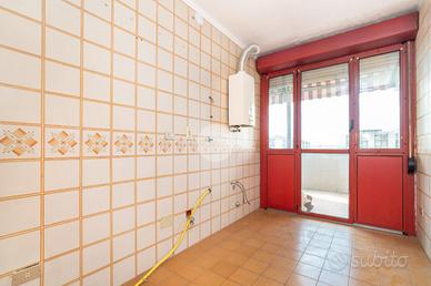 L'immobile è situato al settimo ed ultimo piano della palazzina degli anni 80 servita da ascensore. L'ingresso conduce all'ampio soggiorno reso luminoso da una finestra, può ospitare tranquillamente un divano a isola, una parete TV e un tavolo da pranzo. La cucina può ospitare un arredo completo ed è resa luminosa da un balcone con tende da sole. Un corridoio con zona ripostiglio collega la zona giorno dalla zona notte.