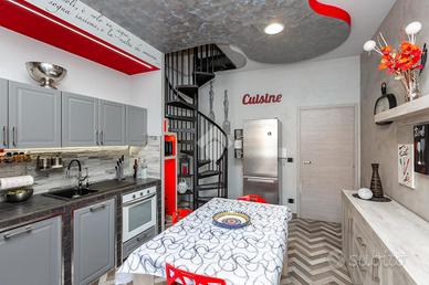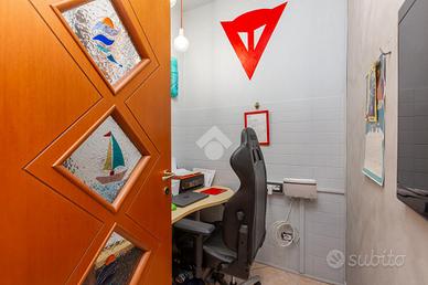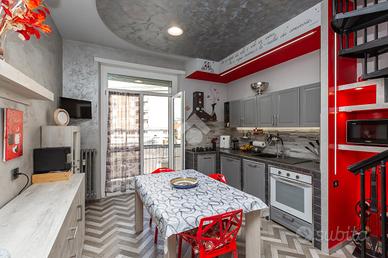 In centro a Beinasco, precisamente in Via Torino. Stabile di poche famiglie dove è stato rifatto il tetto e la facciata nel 2020 e dove verrà ridato il colore alla scala interna e sostituite le buche delle lettere. Inoltre, nel 2025 sono stati sostituiti a nuovo i citofoni con videocitofono. Dalla fusione di due appartamenti, piano secondo e piano terzo, è stato creato un appartamento di circa 113mq dove sotto abbiamo la zona giorno e sopra la zona notte. Il secondo piano è stato completamente ristrutturato nel 2020 e tramite porta blindata c'è l'accesso diretto al soggiorno con porta finestra con infissi in pvc con il triplo vetro con affaccio sul primo balcone con vista sul cortile interno. La cucina è abitabile è c'è la possibilità di posizionare una cucina lineare. Anche in cucina c'è la porta finestra con affaccio sul secondo balcone con vista su Via Torino. Il bagno è dotato di vasca e di finestra. Completa il ripostiglio. Tramite scala interna a chiocciola si arriva al terzo piano ristrutturato totalmente nel 2015 dove ci sono due ampie camere da letto entrambe dotate di porta finestra con affaccio su due balconi differenti. Entrambe le pareti delle due camere sono con doppio isolamento. Il bagno è dotato di doccia e di finestra ed anche al terzo piano è presente uno studio. Al terzo piano si può accedere anche tramite vano scala tramite porta blindata. La ristrutturazione comprende tutto, la pavimentazione in tutta la casa compresi i balconi lato strada che sono piastrellati, gli infissi in pvc con triplo vetro con tapparelle elettriche gestibili tramite telefono dotate di zanzariere modello 'carroarmato' su tutte le finestre. Gli impianti sia idraulici che elettrici sono stati rifatti. Inoltre, l'impianto elettrico è suddiviso per piano e sono presenti due quadri elettrici per suddividere le zone. E'presente il condizionatore nella zona giorno e nella zona notte e c'è la predisposizione in cucina e tramite smartphone c'è comunicazione tra i due appartam..