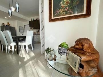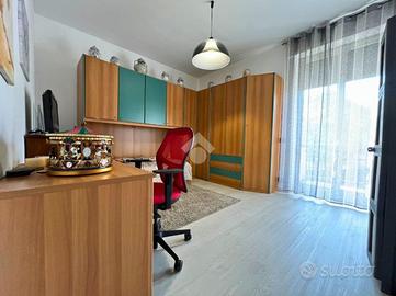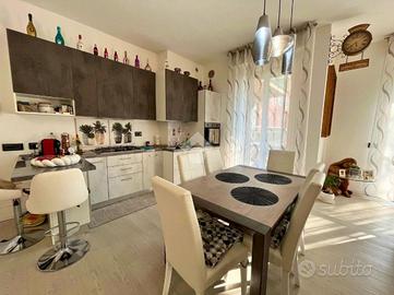 L'ingresso si apre direttamente sull'ampio e luminoso soggiorno con cucina a vista, che affaccia su un terrazzo vivibile, perfetto per pranzi all'aperto o momenti di relax. La zona notte è ben separata e ospita una spaziosa camera da letto matrimoniale con una profonda armadiatura su misura e un secondo terrazzino privato, troviamo poi una seconda camera da letto, anch'essa con accesso al terrazzo, un comodo ripostiglio e un bagno finestrato dotato di comoda doccia.