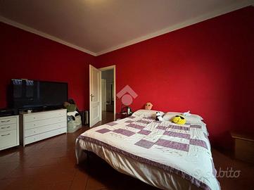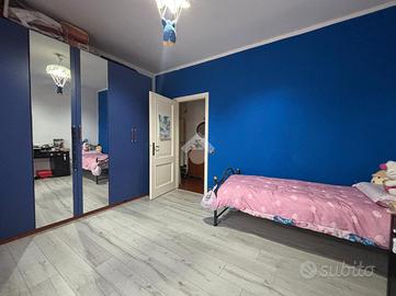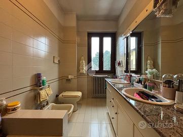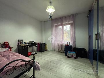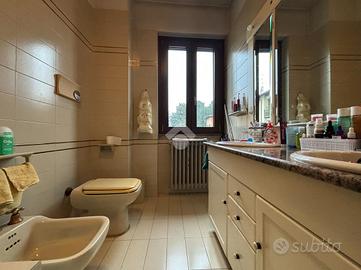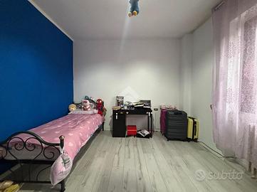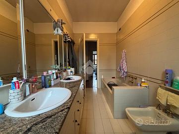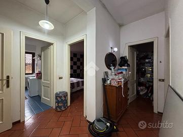 La disposizione interna comprende quattro ampi locali così distribuiti: l'ingresso si apre su di un ampio soggiorno illuminato da due porte finestre che conducono al balcone che si affaccia sull'interno della corte, la cucina è abitabile, sono presenti una camera singola e due matrimoniali, due bagni finestrati ed un comodo ripostiglio.