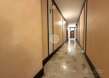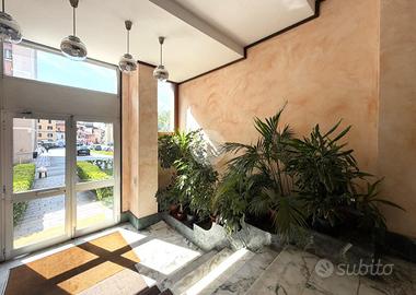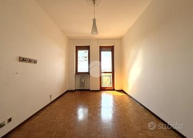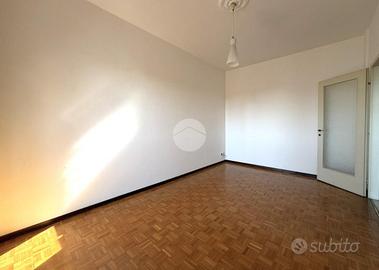 Appartamento posto al secondo piano di un condominio con ascensore, in posizione centrale e soleggiata. L'immobile è così composto: ingresso su corridoio, cucina, soggiorno, due camere, bagno e due balconi. Infissi in legno con doppio vetro. Riscaldamento centralizzato a radiatori con termovalvole; il 30% dei consumi di riscaldamento è incluso nelle spese condominiali, pari a circa 2.200 € annui, che comprendono anche l'acqua calda. A completare la proprietà una cantina e un box auto.