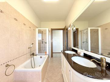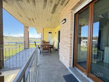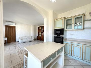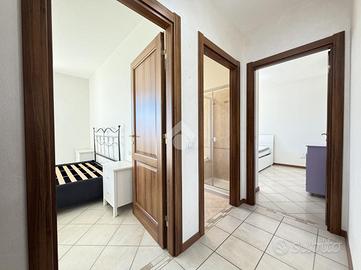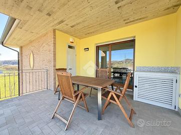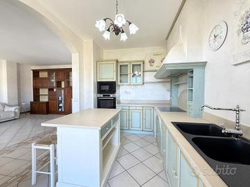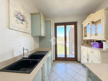 Nel tranquillo comune di Bistagno, proponiamo in vendita elegante appartamento situato in una palazzina di recente costruzione (anno 2013), posto a un piano alto e caratterizzato da una splendida vista aperta sul paese e sulle colline circostanti. L'immobile si distingue per le finiture di qualità superiore rispetto al capitolato originale del costruttore e per l'ottimo stato manutentivo. L'ingresso si apre su una luminosa zona giorno, con cucina separata e accesso diretto a un ampio terrazzo vivibile, ideale per momenti di relax all'aperto. Sul terrazzo è presente un pratico locale ad uso ripostiglio/lavanderia. La zona notte è ben distribuita e comprende un bagno principale con doppio lavandino, doccia e vasca da bagno e le due camere da letto, di cui una camera con accesso a terrazzo privato e bagno en suite (attualmente adibito a cabina armadio). Dotazioni e comfort: - tapparelle elettriche con zanzariere - impianto di allarme - impianto elettrico già sezionato - pompa di calore caldo/freddo in tutti gli ambienti - porta blindata e infissi in legno con doppio vetro - riscaldamento a pavimento Possibilità di parcheggiare nel cortile condominiale. A parte si può acquistare un comodo box auto di circa 26 mq. Soluzione ideale per chi cerca un'abitazione moderna, funzionale e pronta da vivere, in posizione comoda ai servizi che può dare il paese di Bistagno.