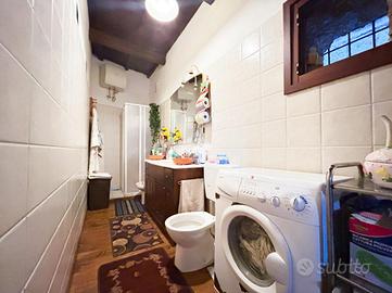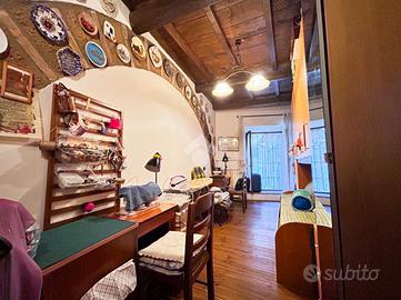 Tra le caratteristiche distintive dell'immobile spiccano i soffitti con travi in legno, che conferiscono un tocco di calore e autenticità, in perfetta armonia con lo stile tipico del centro storico.