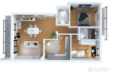 Due ampi balconi panoramici donano ariosità, luce naturale e una piacevole continuità con l'esterno, rendendo gli ambienti futuri accoglienti e sempre ben illuminati.