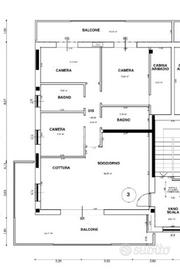 La zona notte dispone di tre camere da letto, tra cui camera matrimoniale con cabina armadio, e doppi servizi, pensati per garantire il massimo comfort abitativo.