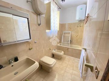 Bagno con Ripostiglio: Un pratico bagno completo di tutto il necessario e dotato di un comodo ripostiglio per tenere in ordine gli accessori e gli oggetti di uso quotidiano.