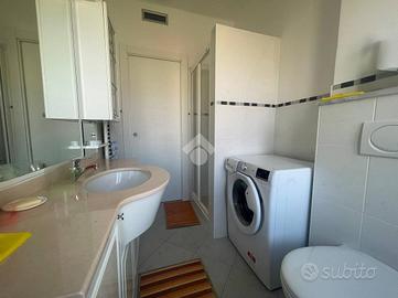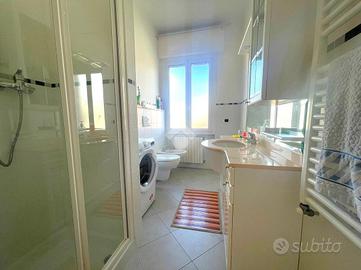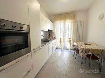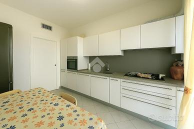 La palazzina di soli due piani è in una tranquilla traversa della via principale. Via Lagazzi offre la serenità di un fondo cieco, lontano dal traffico, ma con la comodità di essere vicino ai negozi e al sottopasso per il lungomare. L'alloggio è stato completamente ristrutturato e vanta una duplice esposizione est/ovest che garantisce luminosità tutto il giorno. All'interno, troverai un ampio ingresso che conduce a una cucina abitabile con accesso al primo terrazzino, ideale per colazioni all'aperto. La zona notte comprende una cameretta, un comodo sgabuzzino e una spaziosa camera matrimoniale. Il soggiorno, luminoso e accogliente, si apre su un secondo terrazzino perfetto per rilassarsi. Il bagno è dotato di doccia e finestra, offrendo comfort e praticità. L'appartamento dispone di riscaldamento autonomo e condizionatori per il massimo del comfort in ogni stagione. Completa la proprietà una cantina e un posto auto condominiale, con la possibilità di acquistare un box auto a parte per 35.000 euro.