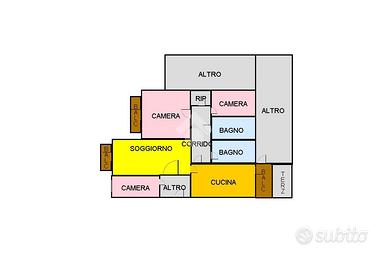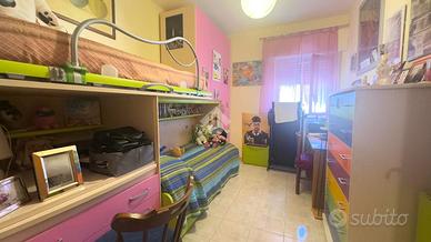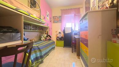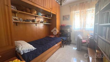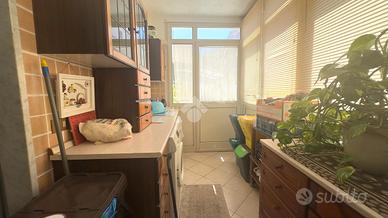 L'appartamento è composto da un ampio e luminoso soggiorno, una camera da letto, due camerette, un piccolo ripostglio, due bagni e una cucina che si apre su una piccola veranda coperta, la quale a sua volta si affaccia su un'ampia terrazza.
